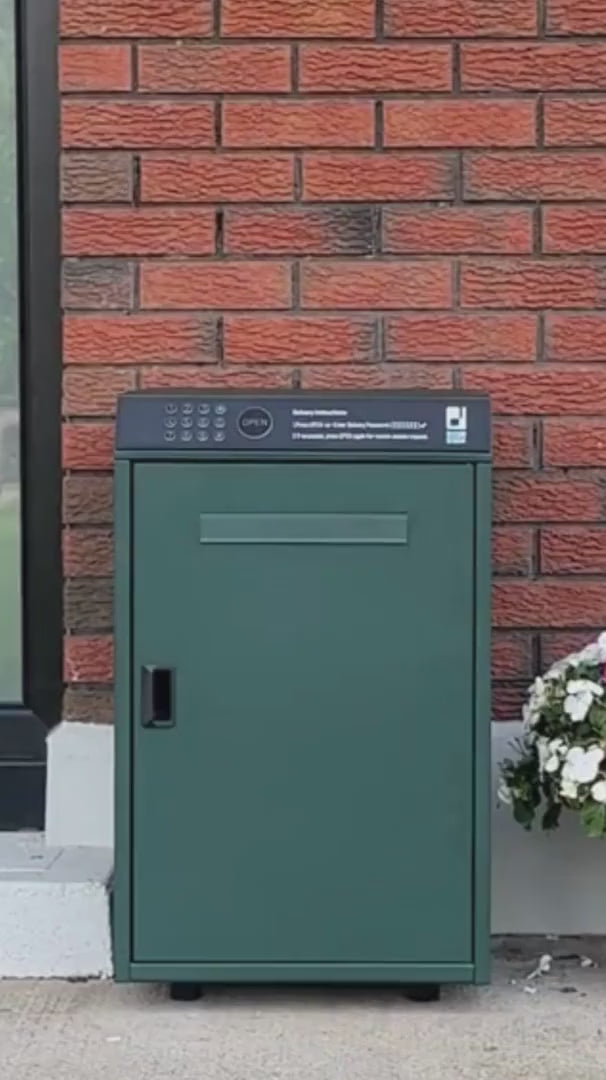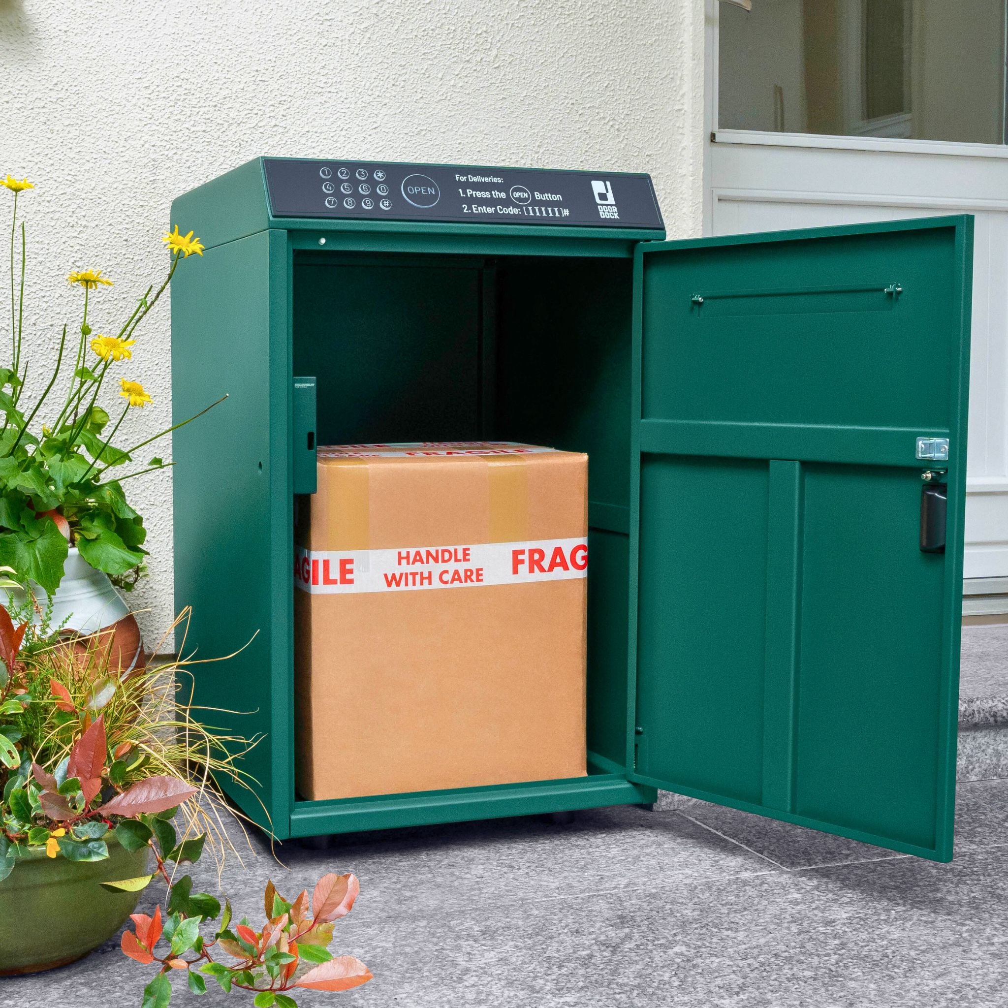 It’s built from heavy-duty steel, anchored to the ground, and secured with an electronic PIN-code lock that only you and authorized couriers can use.