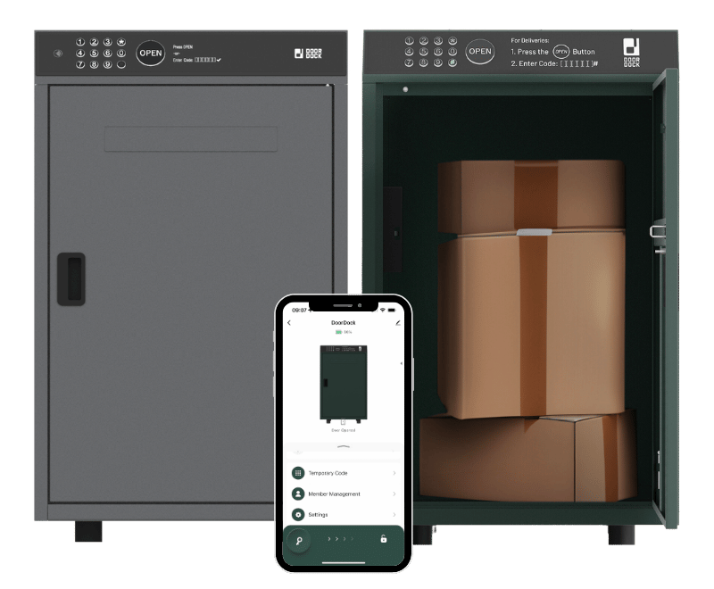 DOORDOCK is a smart, secure, weatherproof parcel mailbox that protects your packages from theft, weather, and missed deliveries—24/7.