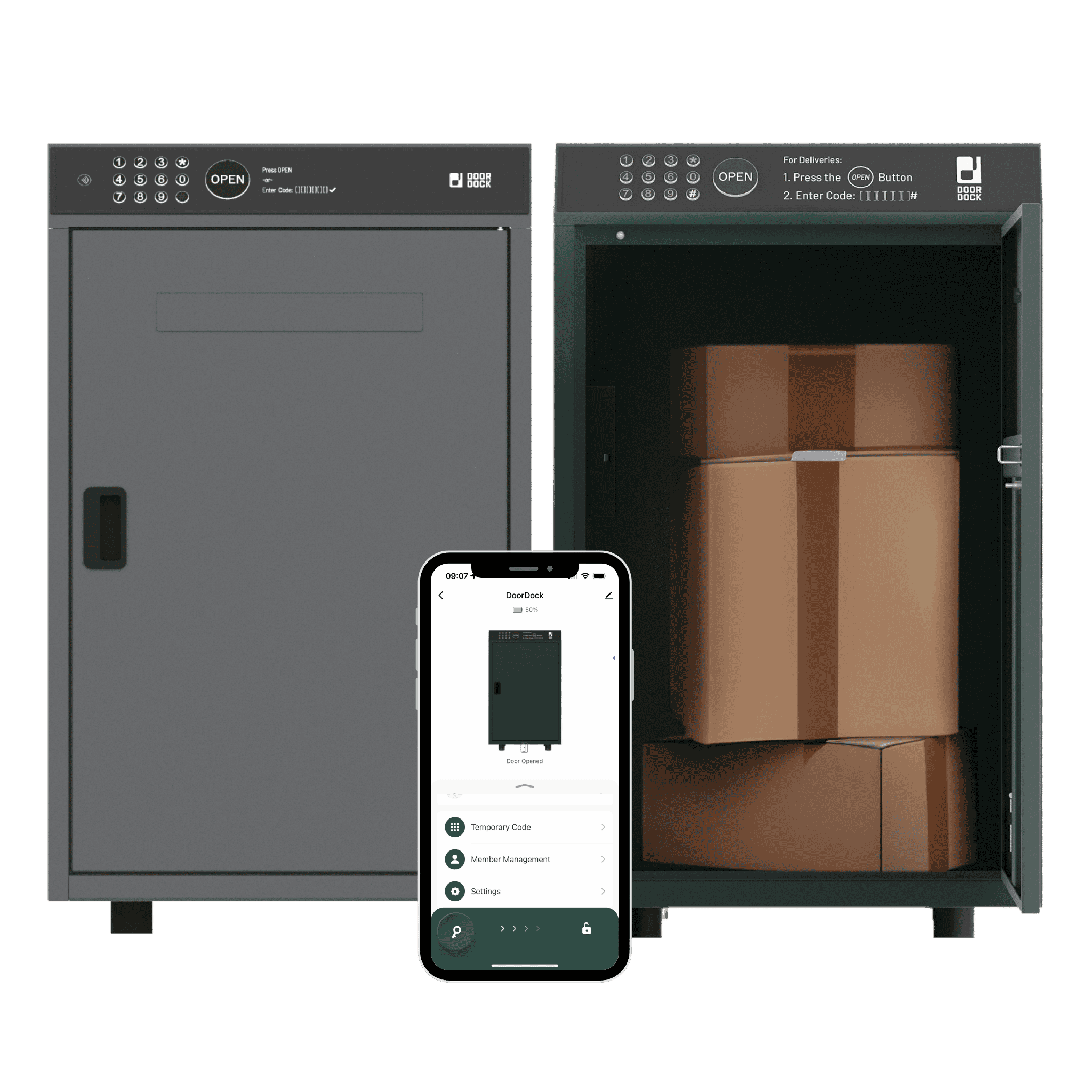 Couriers enter your code to place packages inside. DOORDOCK’s steel build, electronic lock, and weatherproof design keep them safe 24/7.